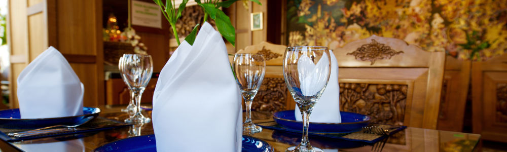 Take a step into the restaurant to be welcomed by our friendly staff in traditional Thai costumes and amazed by the magnificent hand-carved teak furniture, fantastic Thai decorations and abundance of tropical plants.